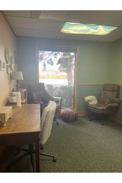 Welcome to my office! I hope you feel at home while you are here. The chairs are comfy, I made the art on the walls and softened the lighting to create a safe, confidential space for sharing and creating the next chapter of your life - the one where you feel whole and at home in your body.